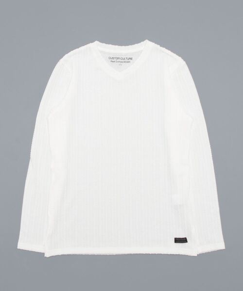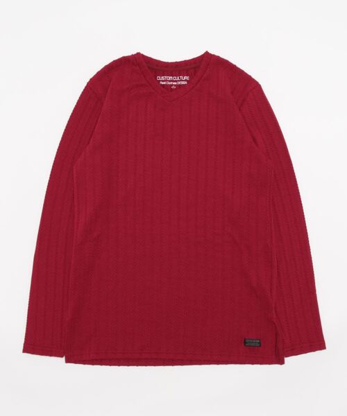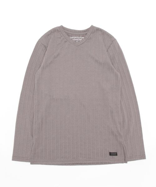 【CUSTOM CULTURE】 ケーブルMIXジャガード Vネック ロングスリーブTee立体感のある柄がポイントとなっている、ロングスリーブのVネック カットソーです。太ケーブルと細ケーブルのリピートの編み柄が特徴的なジャガード生地を使用することで、インナーとしては勿論ですが1枚で着ても存在感のある仕上がりになっています。裾のスリットもワンポイントデザイン。カジュアルな着こなしからキレイめのスタイリングまで、幅広く着用出来るアイテムです。【よりお買い物をお楽しみいただく為に】▼商品のお気に入り登録完売カラーの再入荷通知や、ラスト1点の通知、セールの通知も受けることができます。▼ブランドのお気に入り登録新商品や再入荷等、いち早くブランドのお得な情報を受け取ることがきます。